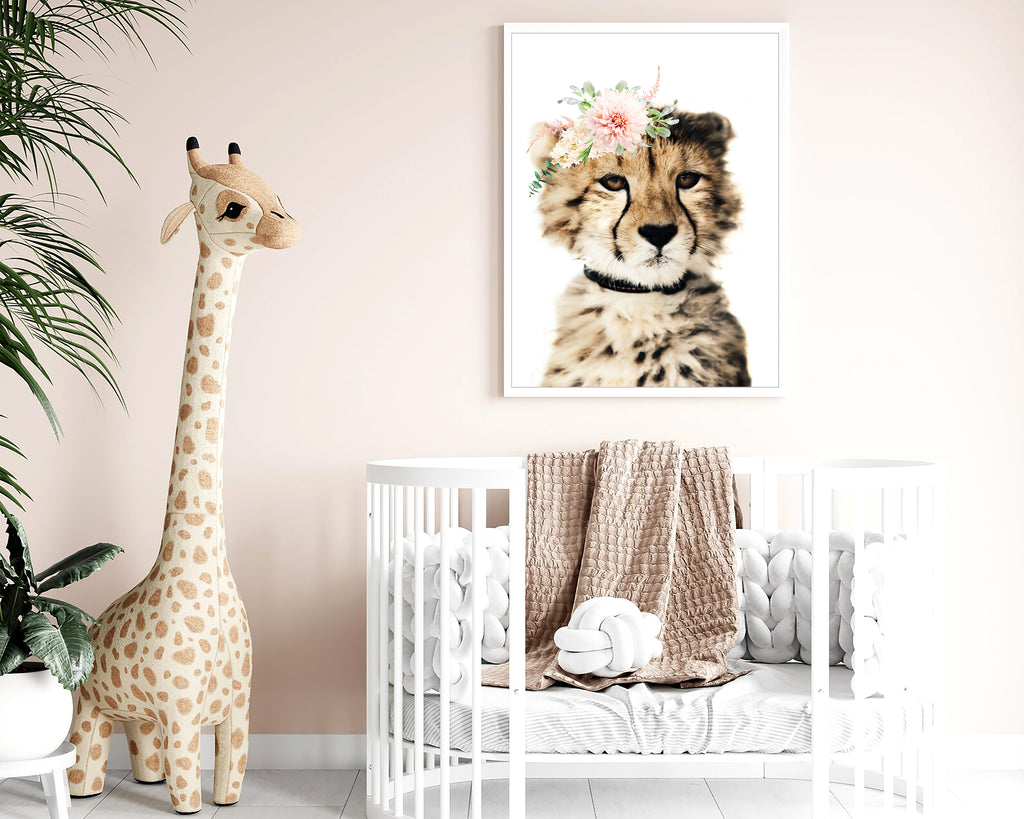 Cute Leopard Cub with Flower Crown Nursery Digital Printable in Multiple Sizes - NA1006A